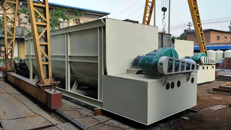 氫氧化鈣消化器的工作原理:生石灰從進(jìn)料口進(jìn)入消化器進(jìn)行加水,接著進(jìn)行雙螺旋消化。此時(shí)產(chǎn)生大量帶粉塵的蒸汽,氫氧化鈣消化器是通過(guò)風(fēng)機(jī)給水箱產(chǎn)生負(fù)壓,然后把外來(lái)含有粉塵的蒸汽通過(guò)引風(fēng)管吸入水箱,這樣粉塵遇水沉淀,而蒸汽遇水則成水了。生成的沉淀在水箱里與外來(lái)加水混合后然后由水泵抽走,再給消化器加水,這樣就實(shí)現(xiàn)了除塵和除塵后的污水循環(huán)利用的過(guò)程,解決了濕式除塵利用率低和二次水污染問(wèn)題。含有粉塵的蒸汽是通過(guò)多個(gè)除塵篩管進(jìn)入水箱的,每個(gè)篩管上又打有多個(gè)小孔,這樣蒸汽其實(shí)就是通過(guò)小孔進(jìn)入水中的。這樣每個(gè)小孔吹水泛起的水花就不會(huì)有粉塵被帶走了,從而達(dá)到除塵效率高的特點(diǎn)。
